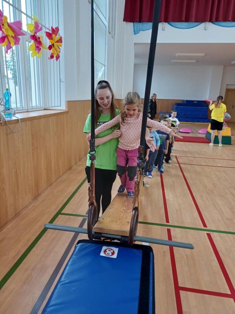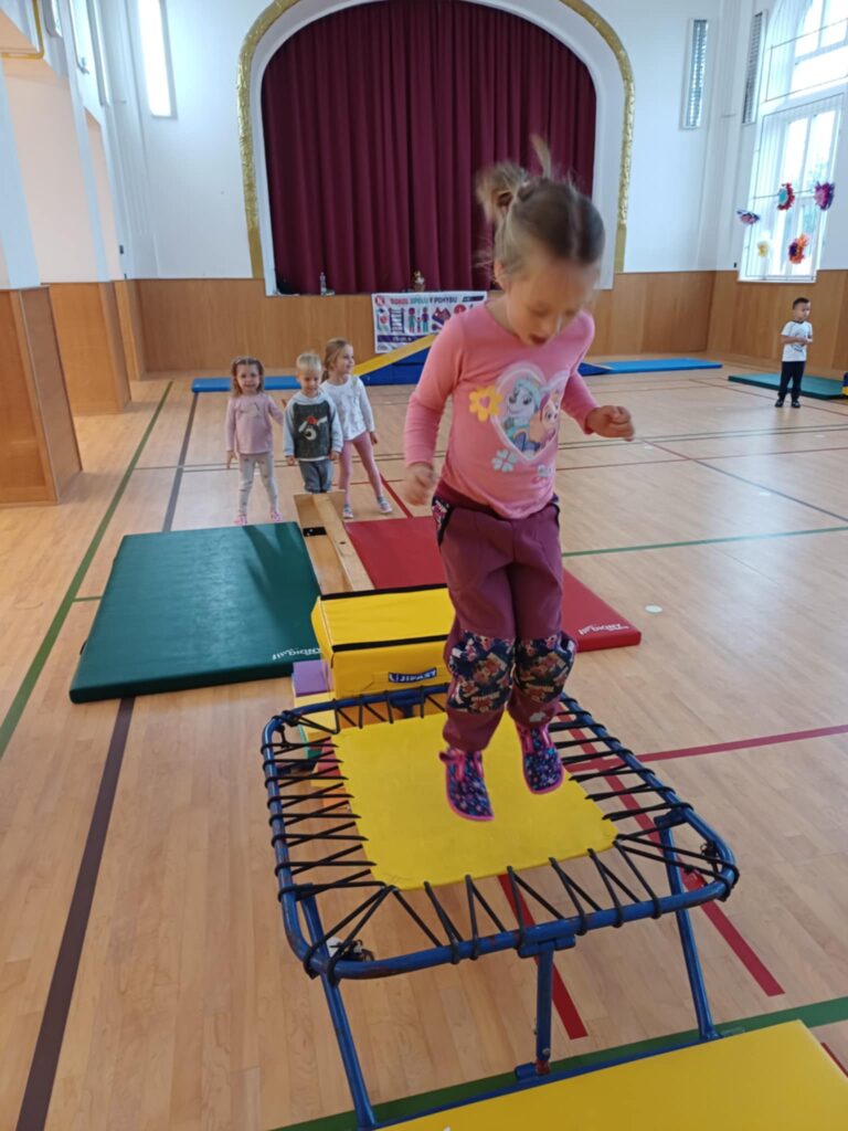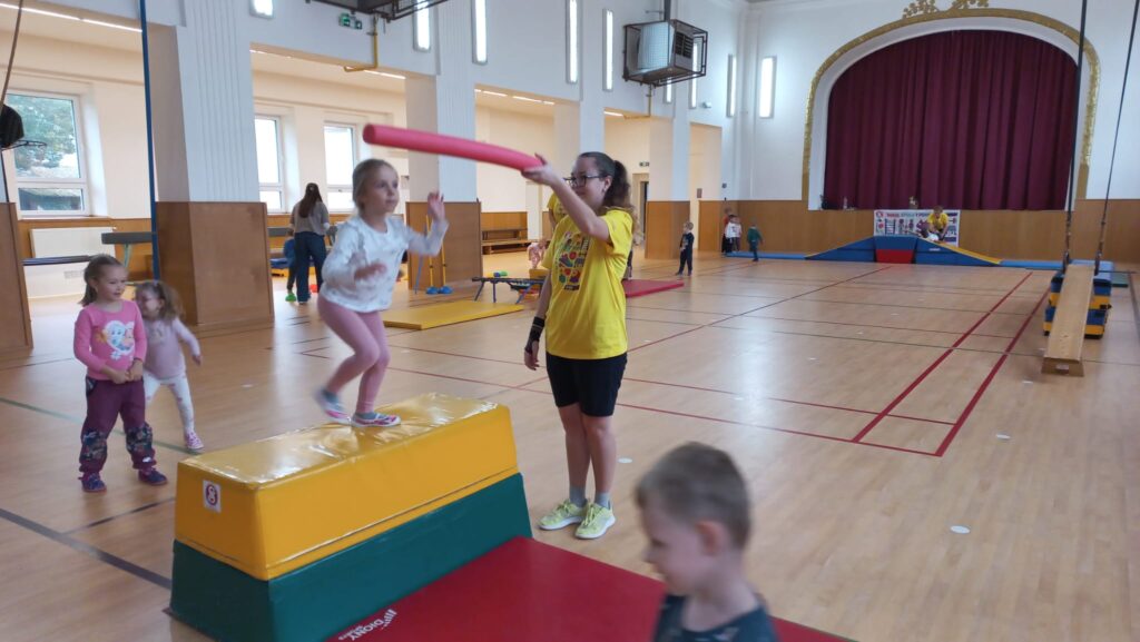 dnes jsme v sokolovně uvítaly přes 100 dětí ze sedmi tříd místní mateřské školy v rámci týdne Sokol spolu v pohybu. Pro děti jsme přichystaly 4 stanoviště, kde utužovaly svoji obratnost, ale i odvahu při skoku na bednu, kotoulech na nakloněné rovině, výstupu na zavěšenou lavičku na kruzích nebo při balancování na „kladině“ a následném přeskoku z odrazové trampolíny. Děti byly nadšené a prý se jim u nás v sokolovně líbilo.